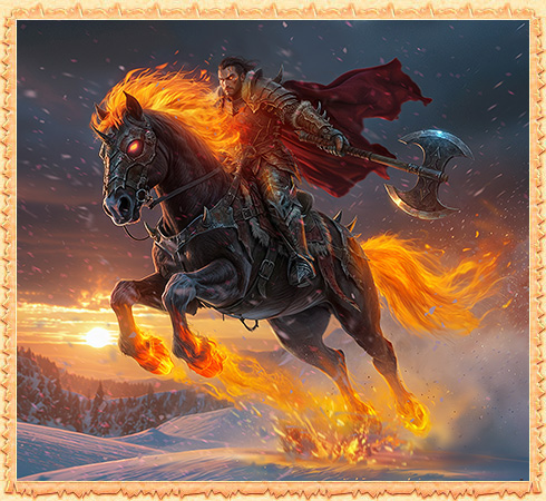 Снег дымится под копытами, из ноздрей вырывается пламя. Дракон, а не конь! Враги в панике рассеются перед всадником на таком жеребце, а их поместья будут обращены в угли и пепел.